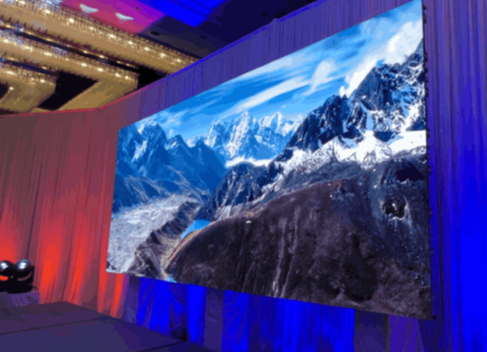 Our LED video walls can be set up in a variety of layouts to fit your space, from intimate presentations to large-scale stages. Covering up to 32’ wide by 10’ tall (120 square meters), we can design a custom configuration tailored to your venue and audience.